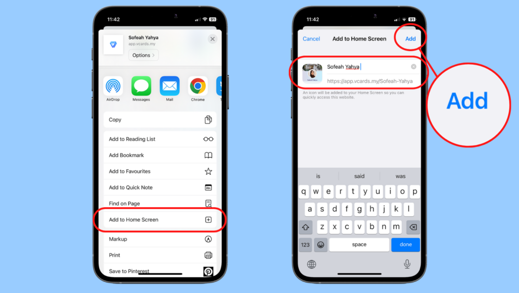 That’s right! By using the bookmark function, you can add your digital business card to your iPhone home screen for easy access! Follow these steps to learn how to do that.