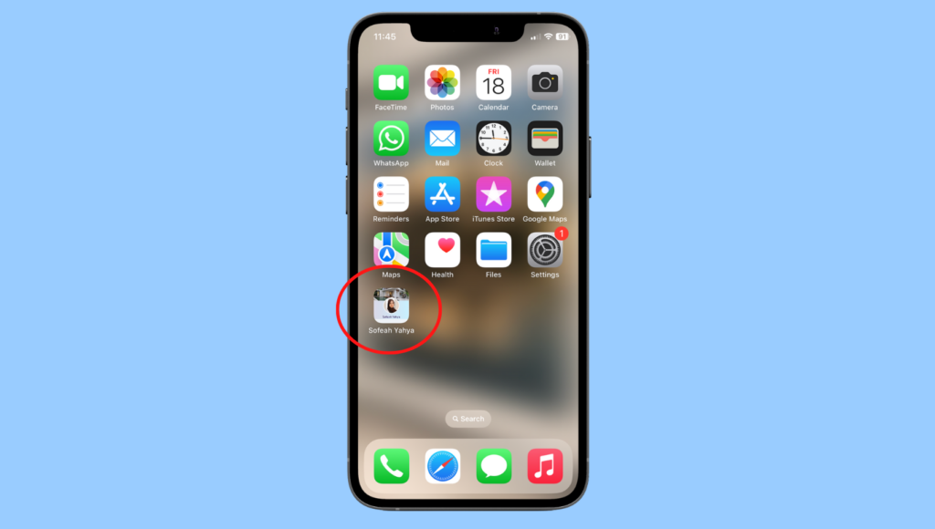Go back to your home screen. You can see your vCard on it now.
